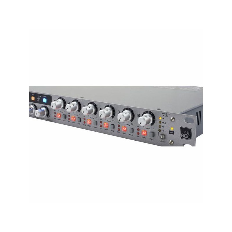 Audient ASP800 è un preamplificatore microfonico dotato di 8 canali, monta i celebri preamplificatori microfonici delle console Audient, convertitori Burr-Brown, due canali D.