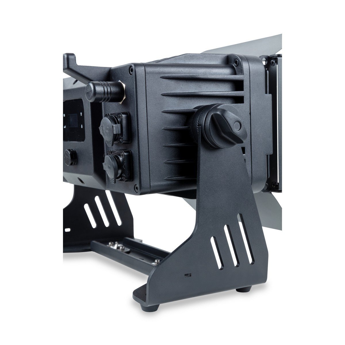Il MoodMaster 8 di Centolight è un proiettore per esterni ad alte prestazioni progettato per eventi live e applicazioni architettoniche che richiedono un’illuminazione diffusa di media ampiezza. È ideale per illuminare sfondi, strutture architettoniche e palchi. Con un angolo del fascio di 10°, offre una diffusione della luce precisa, e se abbinato a un diffusore frost più ampio (40°) o a una lente asimmetrica (10° x 60°), offre una versatilità migliorata per esigenze di illuminazione più ampie. Il prodotto è inoltre dotato di barndoor per un ulteriore controllo della sagoma della luce. Il dispositivo dispone di 8 LED RGBW 4-in-1 da 15 W, disposti per una distribuzione ottimale della luce, garantendo un’illuminazione potente e uniforme. Supporta molteplici configurazioni di controllo, inclusi i modi DMX a 3, 4, 6, 8 e 11 canali, offrendo flessibilità sia per configurazioni semplici che complesse. Un telecomando a infrarossi con una portata fino a 15 metri consente un facile accesso alle impostazioni, mentre il DMX Wireless integrato CRMX permette installazioni senza cavi. La tecnologia di dimmerazione garantisce transizioni estremamente fluide dallo 0 al 100% di luminosità, mentre la sua frequenza di aggiornamento di 1,5 kHz garantisce prestazioni prive di sfarfallio, essenziali per TV, cinema e trasmissioni dal vivo. Combinato con un controllo preciso dei colori, il MoodMaster eccelle in contesti in cui chiarezza visiva e un’alta qualità della resa cromatica sono cruciali. Per un funzionamento silenzioso, il sistema di raffreddamento a convezione naturale elimina la necessità di ventole, rendendolo perfetto per ambienti sensibili al rumore come teatri, musei e concerti. La struttura in alluminio pressofuso, insieme a viti in acciaio inox e vetro termico anti-rottura, garantisce durata e protezione impermeabile IP65, consentendo al proiettore di resistere a condizioni esterne difficili. Alimentato da una batteria professionale al litio, il MoodMaster offre una flessibilità eccezionale sia per soluzioni di illuminazione fisse che mobili. La batteria fornisce fino a 8 ore di utilizzo continuo con un tempo di ricarica di sole 6 ore. Questa portabilità, combinata con il suo design robusto e le avanzate capacità di illuminazione, rende il MoodMaster un’eccellente scelta per i professionisti dell’illuminazione in cerca di affidabilità, potenza e versatilità.