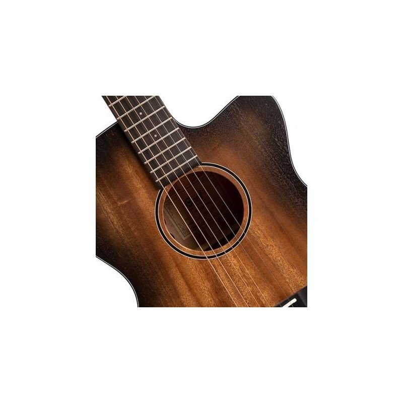 Cort Core-OC Mahogany Open Pore Black Burst è una chitarra acustica elettrificata con fondo, fasce top e manico in mogano, tastiera in Ovangkol e sistema di elettronica Fishman Sonitone.