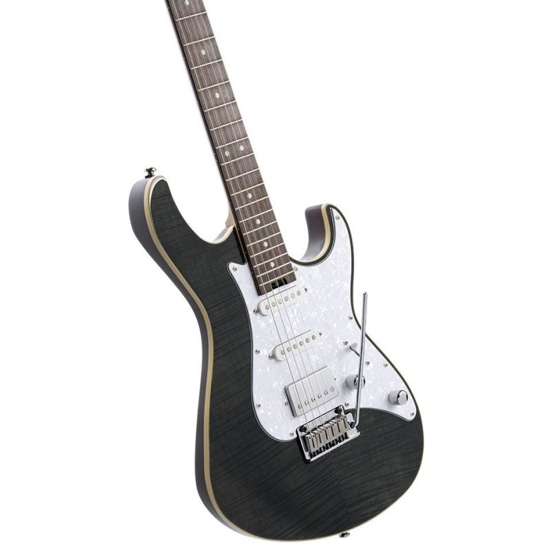 Cort G280 Select Trans Black è una chitarra elettrica solidbody con corpo in ontano, top in acero fiammato, manico in acero canadese, tastiera in palissandro e pickup Cort Voiced Tone VTS63 & VTH77.