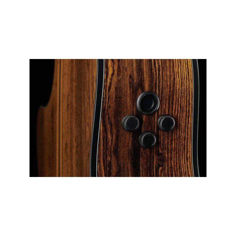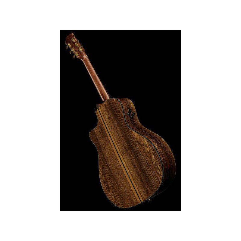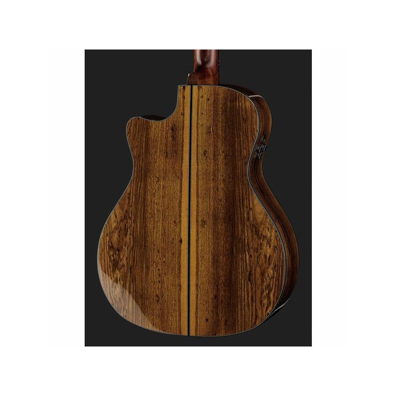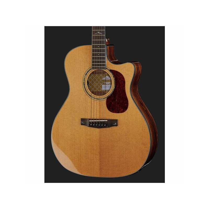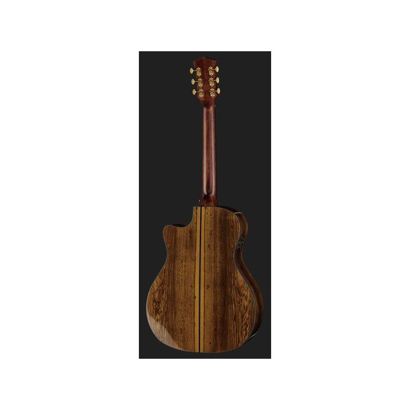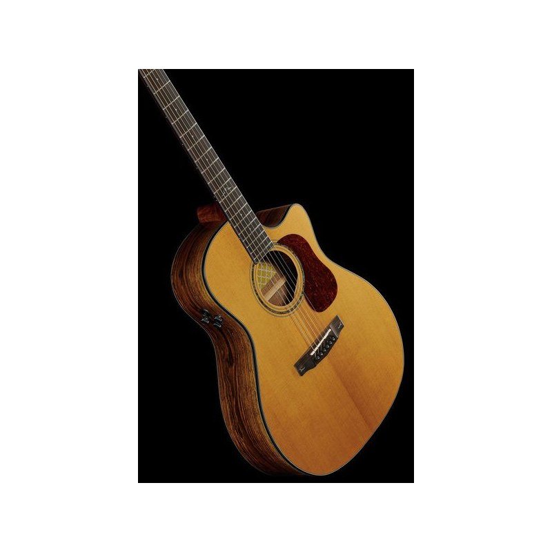 Chitarra Acustica Spalla Mancante Elettrificata <br /><br />• Costruzione: Double-Lock Neck Joint<br />• Scala: 25.3" (643 mm)<br />• Cassa Armonica: Grand Auditorium<br />• Fondo e Fasce: Pau Ferro massello<br />• Binding: White w/ Triple-ply Purfling<br />• Top: Abete Sitka Massello Torrefied (Master Grade)<br />• Manico: Mogano (Palaquium) – rinforzato con due inserti in noce<br />• Tastiera: Ebano<br />• Capotasto: Osso – 45 mm<br />• Inlay tastiera: Gold Custom in madreperla<br />• Meccaniche: Deluxe Vintage Gold<br />• Ponte: Ebano, con pioli in ebano e selletta in osso<br />• Elettronica: Fishman Flex Blend System, con accordatore e microfono interno<br />• Finitura: LB – Light Burst (Sonically Enhanced UV Finish)<br />• Custodia morbida Cort Deluxe Soft-Side inclusa