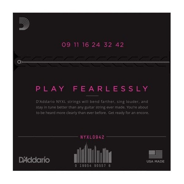 Il set di corde NYXL0042 è un calibro leggero studiato per musicisti che cercano poca tensione e facilità di esecuzione. Le corde per chitarra D’Addario NYXL facilitano il bending, hanno maggior volume e rimangono intonate meglio di qualsiasi altra corda. Concepita, perfezionata e prodotta da D’Addario a New York, questa nuova serie di corde ha l’anima in acciaio ad alta concentrazione di carbonio, che la rende resistente alla rottura come non mai. Le corde della serie NYXL hanno una resistenza ineguagliata e una capacità di rimanere intonate maggiorata del 131%, grazie a processi di lavorazione completamente re-ingegnerizzati. Gli avvolgimenti in nichel sono riformulati per avere maggiori proprietà magnetiche con un conseguente miglioramento di output, presenza e focalizzazione sulle medie.
