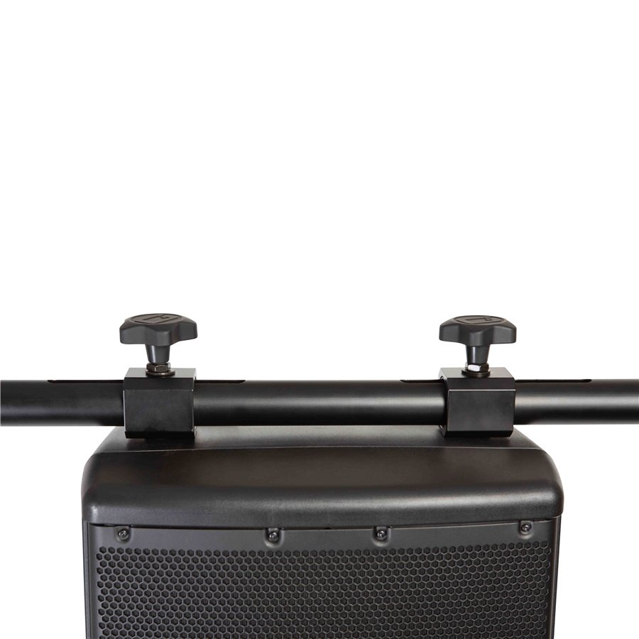 La barra luci GFW-LIGHTSPKFLYMT permette di fissare fino a 4 fari PAR direttamente sui diffusori PA utilizzando i fori filettati presenti sulla parte superiore degli altoparlanti. Questo sistema elimina la necessità di supporti aggiuntivi, riducendo l’ingombro complessivo dell’allestimento. Realizzata in materiali resistenti, la barra è compatibile con filettature M10 e M12 e supporta un peso massimo di 36,29 kg. Ideale per eventi in cui è fondamentale ottimizzare lo spazio.