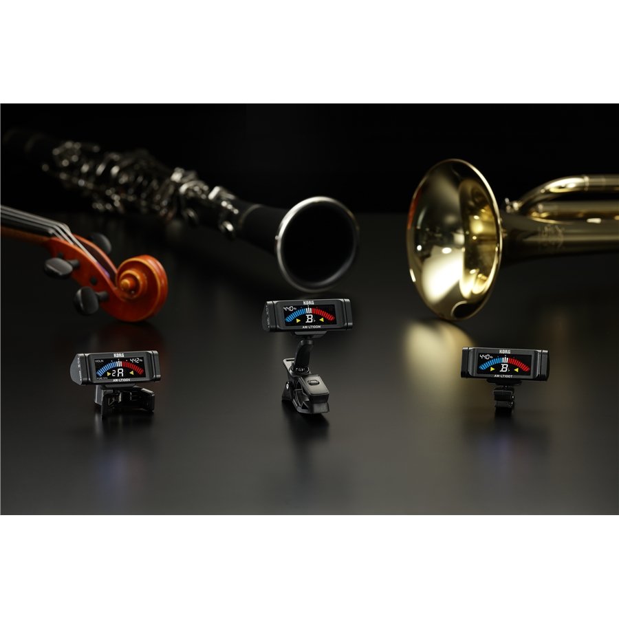 Progettato per gli strumenti d'orchestra, questo accordatore a Clip garantisce fino a 100 ore di funzionamento, con LCD a colori. Gli accordatori a Clip di KORG possono essere fissati direttamente allo strumento per facilitare l'accordatura stessa. La nuova serie comprende: AW-LT100M, che supporta un'ampia varietà di strumenti orchestrali, AW-LT100T ottimizzato per tromba e trombone, AW-LT100V dedicato a violino e viola.