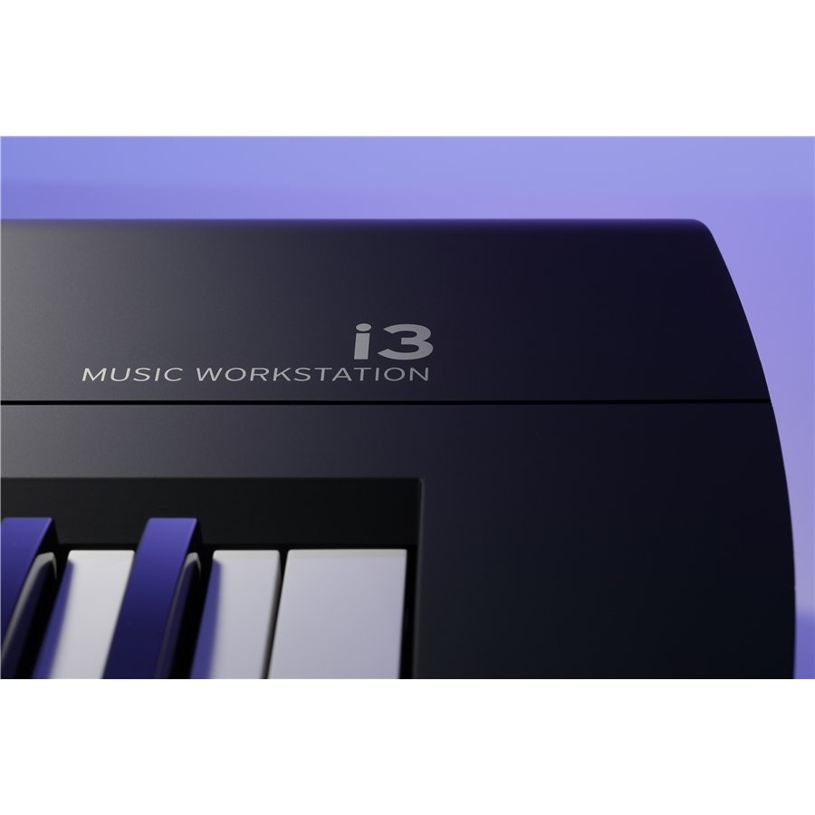 KORG i3 MB è una completa Workstation con tastiera 61 tasti sensibile alla Velocity con 3 curve di risposta dinamica ed una quarta impostazione fissa. I tasti Transpose spostano il Pitch della tastiera di due ottave in alto o in basso, con incrementi di ottava. Il Joystick professionale controlla Pitch Bend, vibrato e brillantezza durante l’esecuzione; un EQ aggiuntivo a due bande (Low e High) regola la timbrica generale. Tutti i pulsanti e i controlli del pannello frontale sono raggruppati in modo logico, in base alle proprie funzioni, mentre il display LCD Custom retroilluminato garantisce il feedback visivo delle impostazioni correnti, e un encoder rotativo modifica rapidamente il valore dei parametri. La finitura scura, la superficie gommata e i pannelli sagomati sono importanti dettagli del suo design esclusivo.