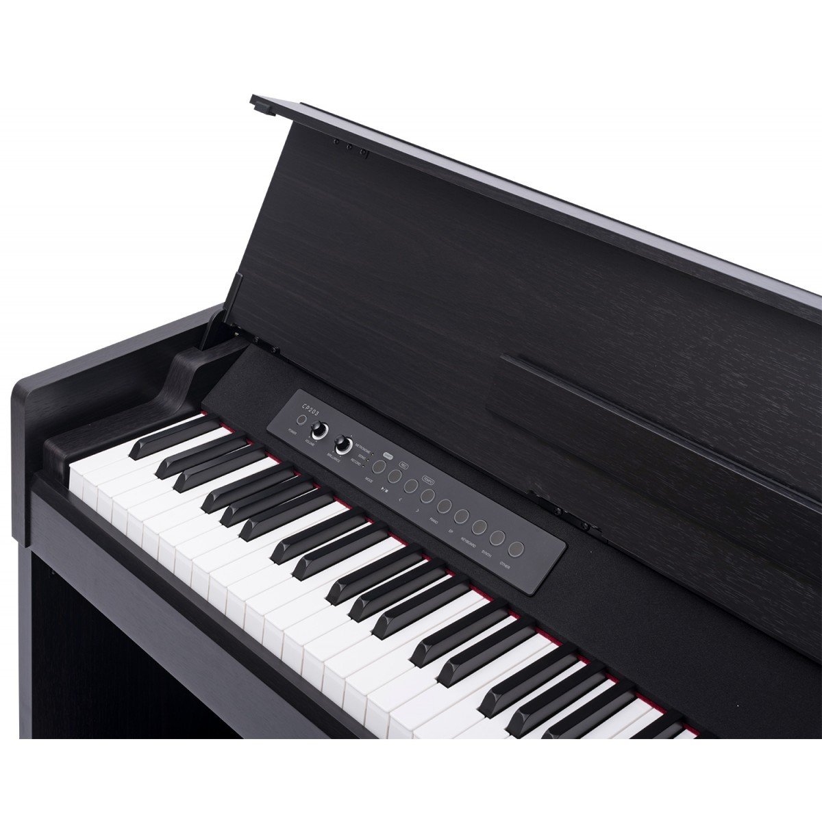 Il pianoforte digitale CP203-BK racchiude l’intera esperienza dei pianoforti digitali Medeli in un formato cabinet compatto; dal suono del pianoforte a coda tedesco, fiore all’occhiello di MEDELI a una polifonia di 192 note; dalla compatibilità della app PianoToolbox a tutti i parametri del suono del pianoforte come il rumore del martello o la risonanza delle corde. La tastiera di nuova concezione offre l’azione del martello completamente ponderata nelle dimensioni più compatte. Inoltre, il nuovo suono esclusivo di pianoforte a coda giapponese, i nuovi brani incorporati registrati con cura e la nuova pedaliera che supporta l’half damping rappresentano l’evoluzione del piano digitale in ogni direzione. La finitura in colore nero aggiunge il tocco di eleganza al pianoforte digitale CP203-BK rendendolo adatto a qualunque tipo di arredamento.