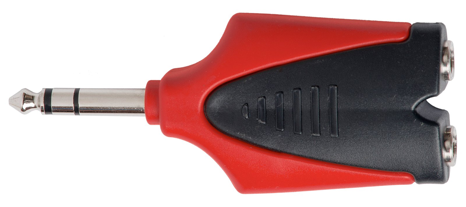 Adattatore professionale realizzato in PVC ad alta resistenza a doppia stampata, con terminazioni in finitura nickel anticorrosione: spina 6,3 mm stereo > 2 x presa 6,3 mm stereo.