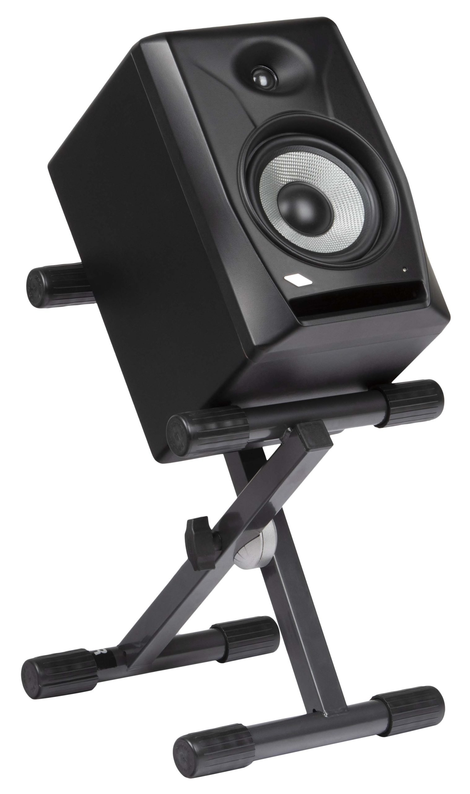 Supporto per monitor di riferimento, ideale per il perfetto posizionamento acustico di casse per hi-fi , computer e professionali. Struttura in acciaio tubolare, inclinabile all’indietro grazie al sistema di regolazione “EASY LOCK”. Disponibile in nero opaco.