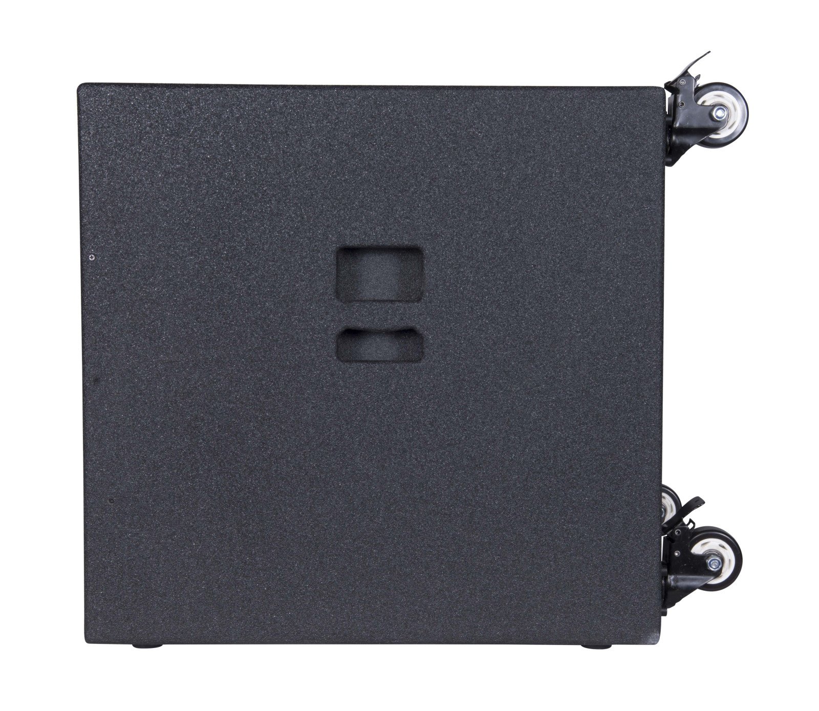 I cabinets sono costruiti in legno multistrato da 15/18mm e rivestiti con vernice poliuretanica extra resistente. Includono due maniglie integrate e ruote da 75mm per il trasporto (S15 e S18).