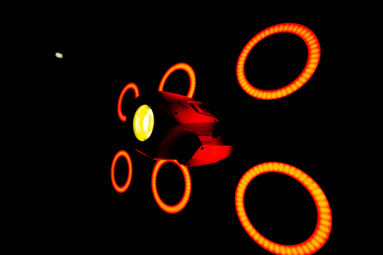 QPix 360 sfida la creatività offrendo una forma circolare, dove i colori ed i pixel possono creare scenografie luminose uniche. Il suo design quadrato e i suoi punti di connessione posti agli angoli permettono infiniti modi d’installazione. Grazie al suo leggerissimo telaio in ABS di colore nero studiato per offrire la massima mimetizzazione al buio, si possono realizzare strutture capaci di integrarsi completamente con tutte le tipologie di proiettori, lavorando con essi come forme luminose di fondo. Uno speciale “flat smoked diffuser “di cui il cerchio è dotato aumenta il contrasto rendendo più nitidi e visibili gli effetti luminosi generati dalle 144 potenti sorgenti led. Il settaggio ed il controllo è affidato al “QPix 360 control box” che permette di pilotare un massimo di 6 cerchi utilizzando direttamente il protocollo DMX.